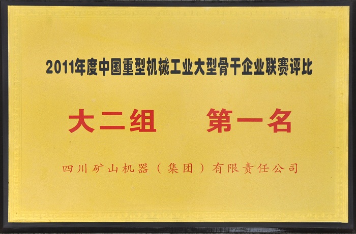 中國(guó)重機(jī)協(xié)會(huì)主持召開(kāi)的2011年度中國(guó)重型機(jī)械工業(yè)大型骨干企業(yè)廠際聯(lián)賽評(píng)比中,川礦集團(tuán)榮獲“大二組”第一名。其中“總資產(chǎn)貢獻(xiàn)率”、“成本費(fèi)用利用率”、“全員勞動(dòng)生產(chǎn)率”、“工業(yè)經(jīng)濟(jì)效益綜合指數(shù)”、“鋼材利用率”、“人均創(chuàng)利稅”、“銷(xiāo)售利潤(rùn)率”、“單位工資創(chuàng)造工業(yè)增加值”、“工傷事故死亡人數(shù)最低”九個(gè)單項(xiàng)指標(biāo)列聯(lián)賽第一名。