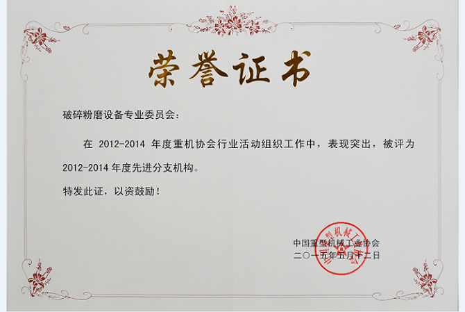 2015年5月11日至13日,以“適應(yīng)新常態(tài),尋找新動力,謀求新發(fā)展”為主題,中國重型機(jī)械工業(yè)協(xié)會六屆四次會員代表大會暨理事會在北京順利召開。會議審議并通過了常務(wù)副理事長李鏡作的《在新常態(tài)中創(chuàng)出行業(yè)發(fā)展的新空間》工作報(bào)告、秘書長岳建忠作的《財(cái)務(wù)報(bào)告》,表彰了優(yōu)秀分支機(jī)構(gòu),我破碎粉磨設(shè)備專業(yè)委員會受到總會的表彰。