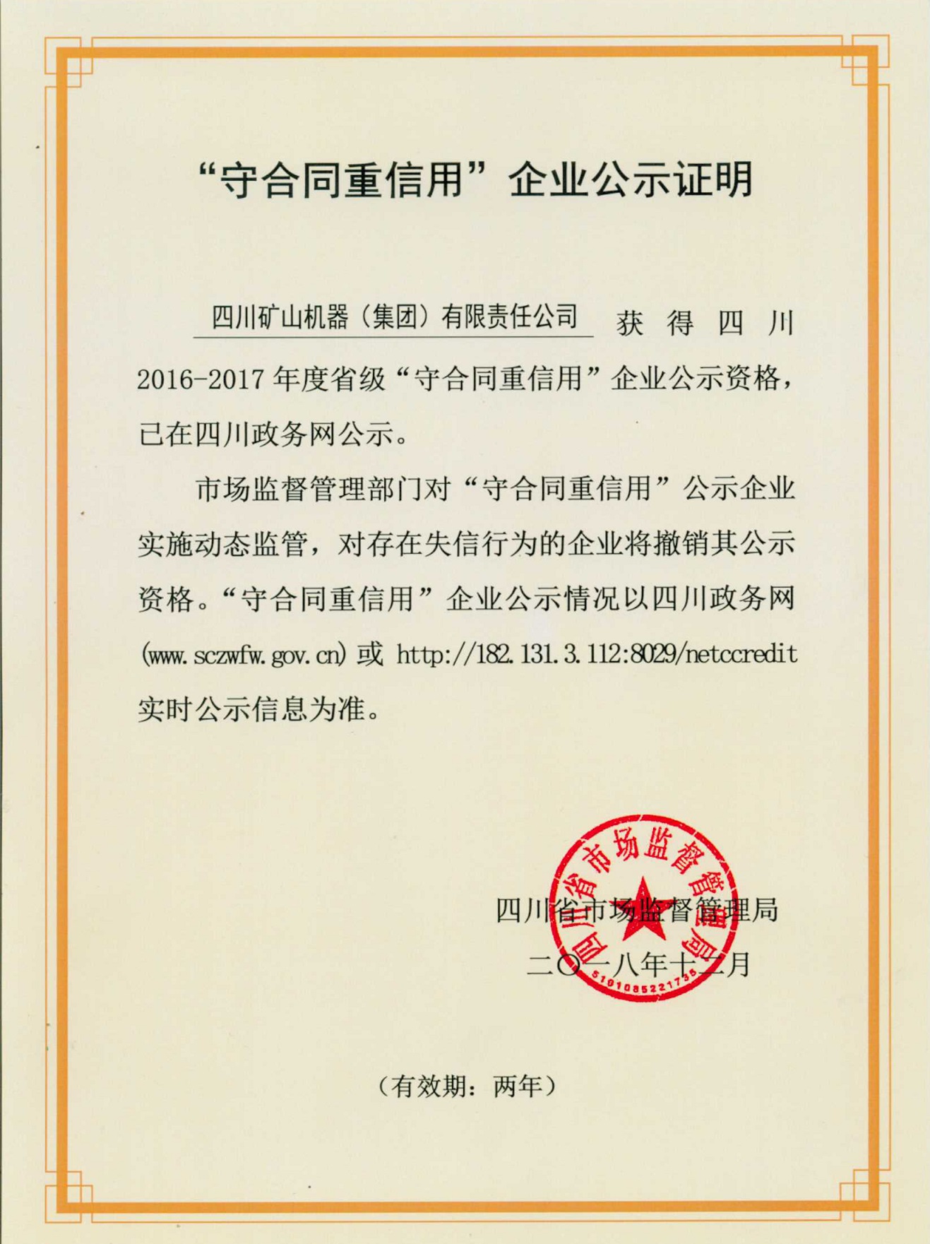 數(shù)十年來,川礦集團堅持誠信經(jīng)營,自覺把“榮譽”當作“資質(zhì)”,讓誠實信用行為貫穿于市場的始終,不斷提高合同信用管理水平以及合同簽約履約能力,踐行社會誠信體系建設(shè),得到廣大客戶和社會各界的廣泛認可。